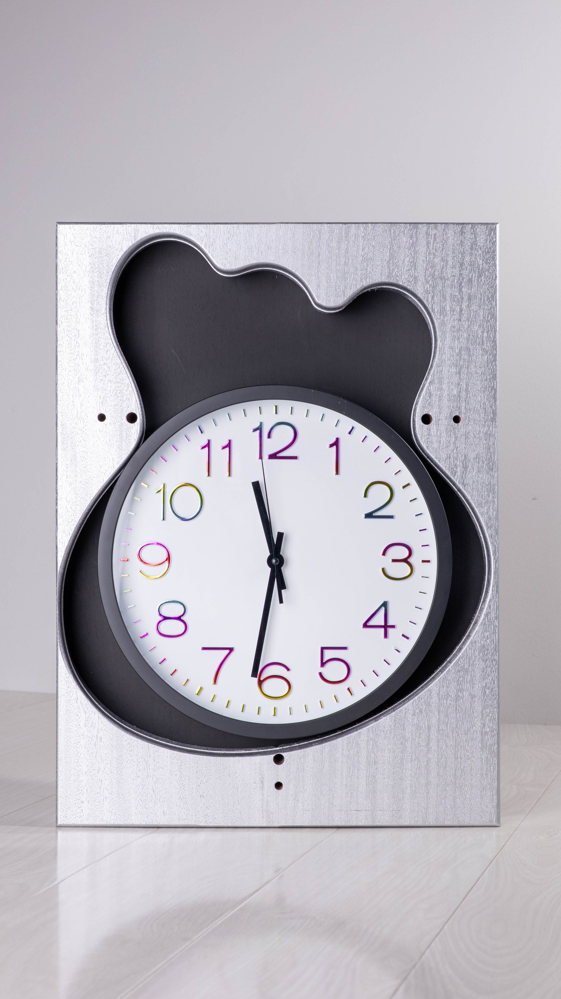 This Clock was hand made with premium wood and paint using the cutout from the guitars we make.